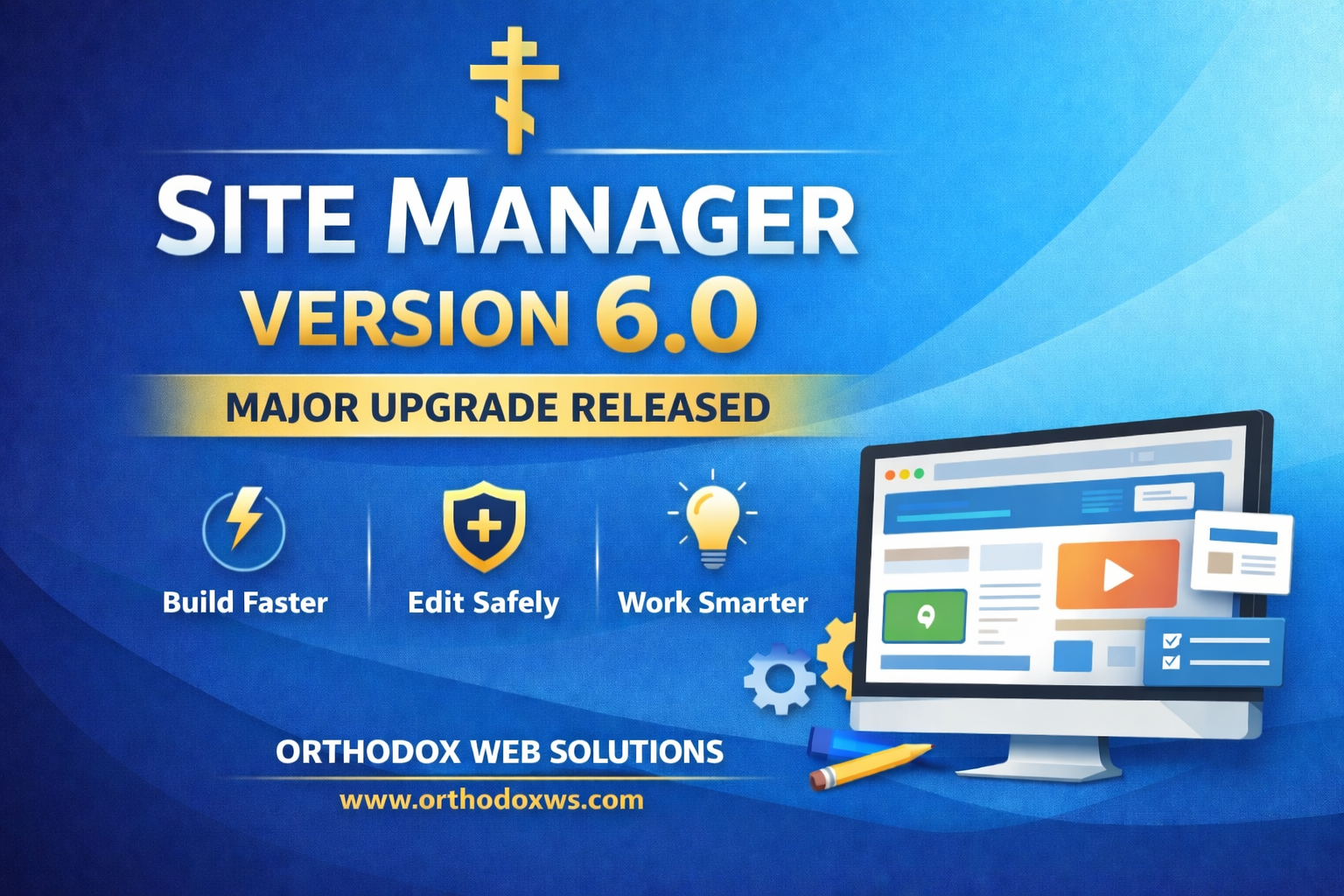 After extensive development and testing, Orthodox Web Solutions is pleased to announce a major upgrade to Site Manager. Version 6.0 will begin rolling out starting Bright Week, 2026.
